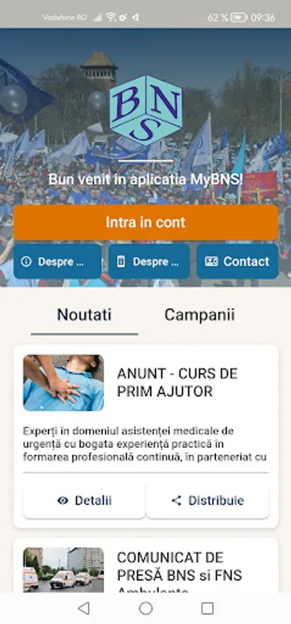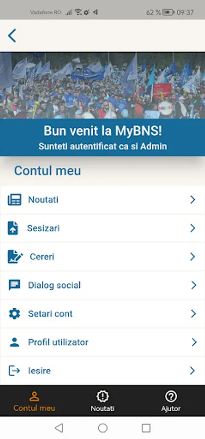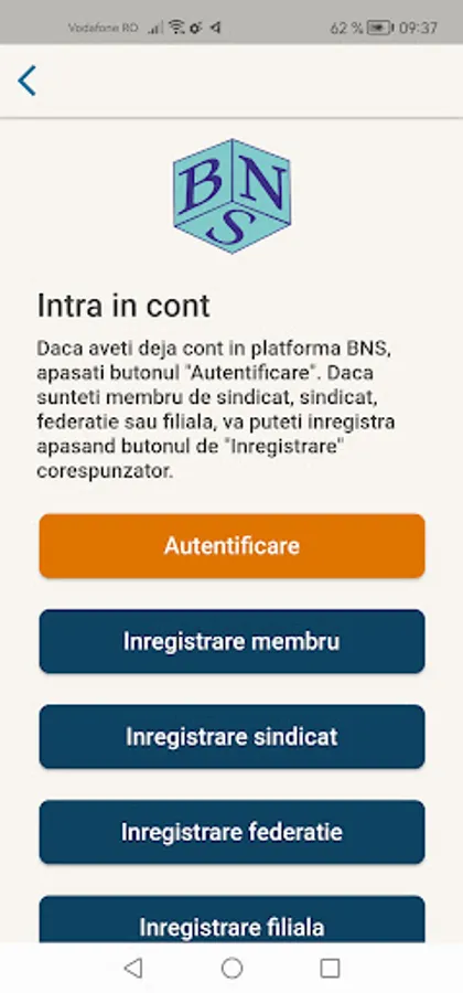 The MyBNS application is developed by the National Trade Union Bloc for smartphones and tablets. The application is available in Romanian, and its content is integrated with the www.bns.ro platform.