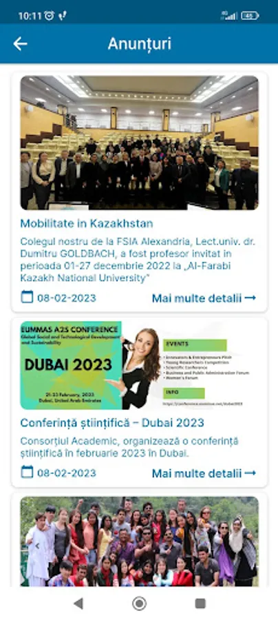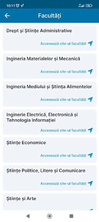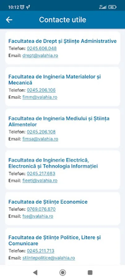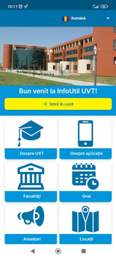 The application offers quick access to information focused on the students' fields of interest, such as: faculty timetables, faculties within the university, information on the location of the various buildings where both didactic and non-didactic activities take place, useful contacts, as well as various announcements and notifications.