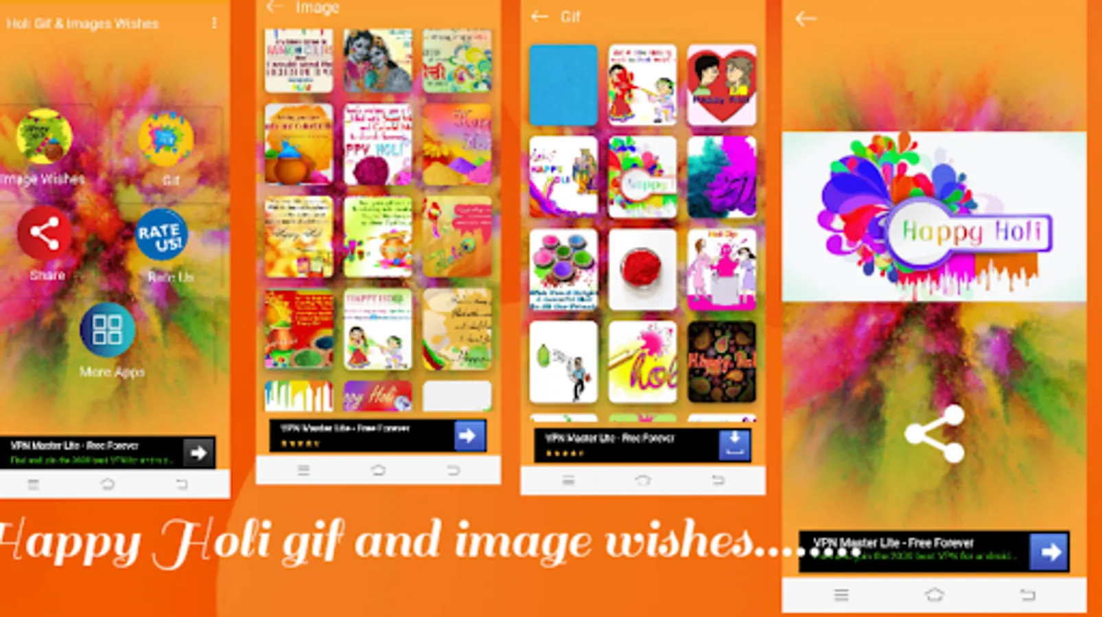 You can easily share Happy Holi Wishes : Color Festival Greetings & GIF through this application.