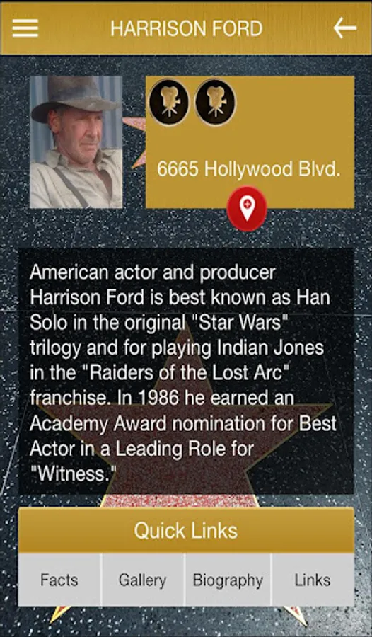 The Official Hollywood Walk of Fame App will enrich your experience as you view the legendary stars on Hollywood Boulevard. With the touch of a button, you can access the complete list of Stars on the Walk of Fame, get detailed information about each person and view their official Walk of Fame photos and video clips. This interactive app allows you to play games and trivia challenges and create your own Star to share on social media and email. In addition, the app also includes a rewarding digital discount book with access to coupons from many vendors along the Walk, saving you money on dining, souvenirs, entertainment and more. The Official Hollywood Walk of Fame App is a collaboration between the Hollywood Chamber of Commerce and MediaMine.