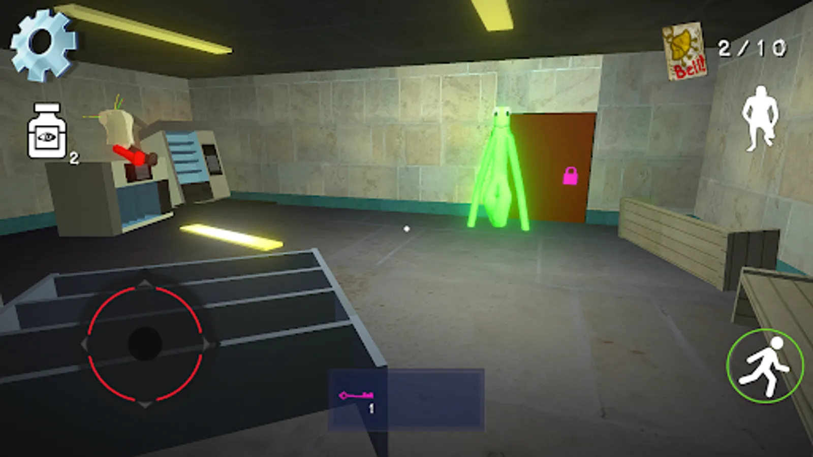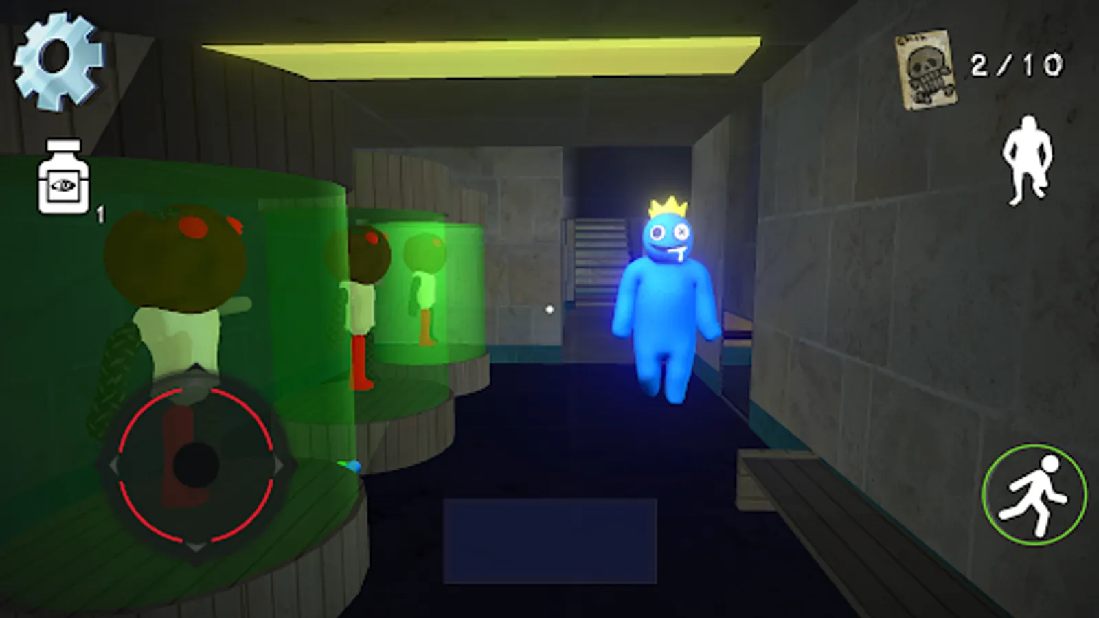 Explore around the map, try to solve the puzzles, find keys to unlock doors, and escape from rainbow friends.