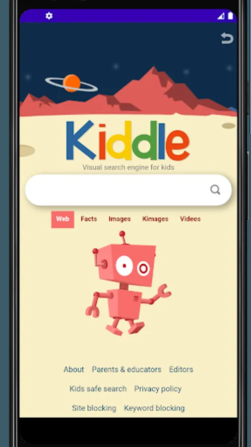 This app allows https://www.kiddle.co to be accessed through an Android app without relying on a web browser. I made this for people like myself who want their children to enjoy the kiddle website without worrying about them navigating onto other unwanted websites. This app has no control over the internal workings of kiddle.co. It is nothing more than a shell, delivering kiddle.co through a restricted web view.