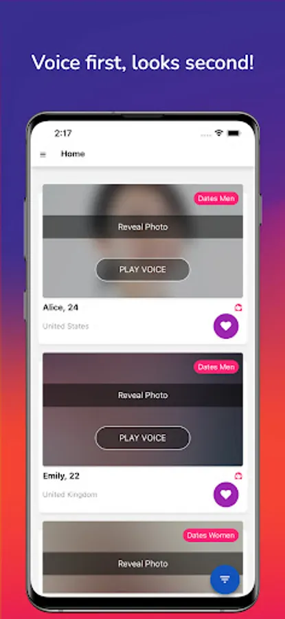 Ever played the game of secret pal? Where the participants' looks are revealed only after the entire blind dating session? Holler Date works similarly to secret pal, except that singles get to browse quick voice intros and reveal photos with match points. It's quicker, more efficient and you get more matches.