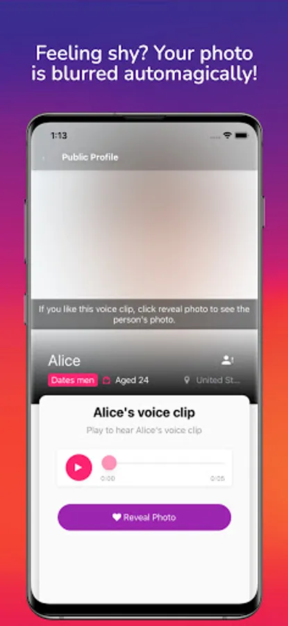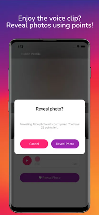 3. Like a voice intro? Reveal the person's photo behind the voice intro using match points! If you like what you see, send a match request!