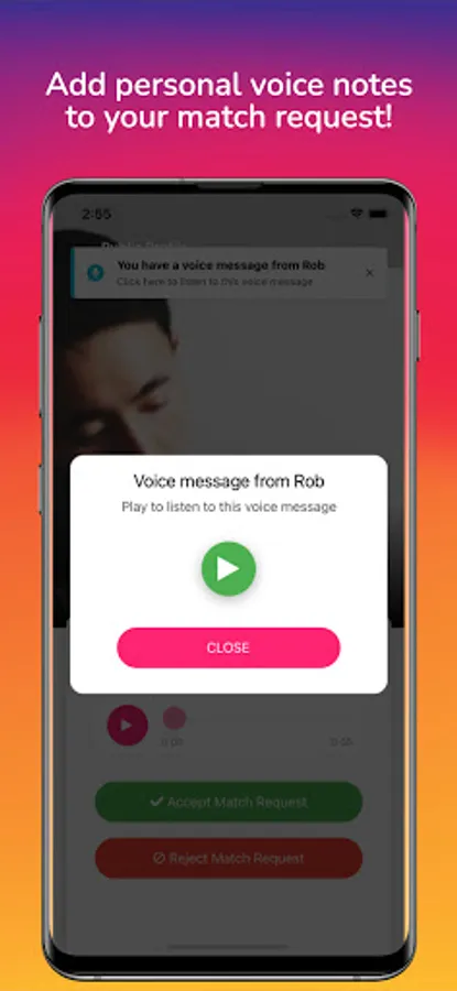 4. Add a personal voice note to your match request. Turbocharge your chances of getting a match.