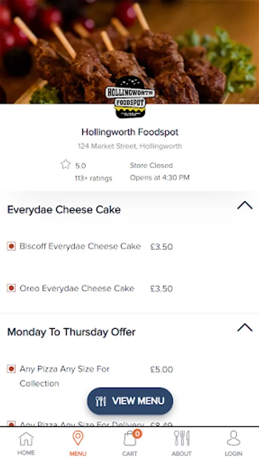 Hollingworth Foodspot Takeaway based in 124 Market Street, Hollingworth, Greater Manchester, SK14 8HY. We aim to bring all of our customers the best value for money, services and food around, plus we are constantly aiming to improve our takeaway service in Hollingworth. You can now order food online. Try our online website which contains all our takeaway menu. We offer deliveries to all surrounding areas of Hollingworth We offer all our customers fast food delivery. You can now order your favorite dish online and get fast home delivery. We are very particular about our service and quality to give our customers a better experience; which is why we are now proud to offer this fantastic online ordering website. You can even pay online and get your food delivered to your home in Hollingworth.