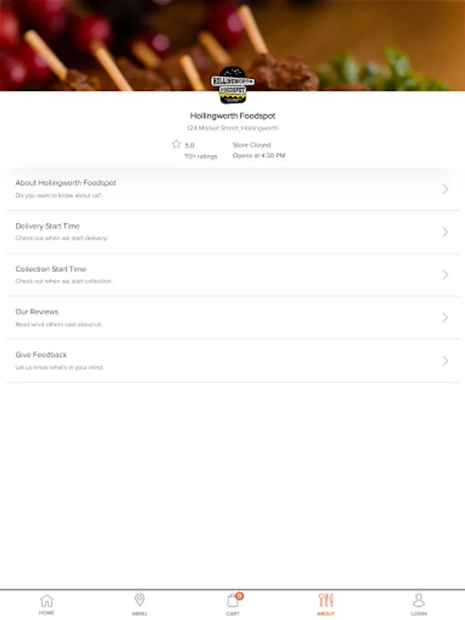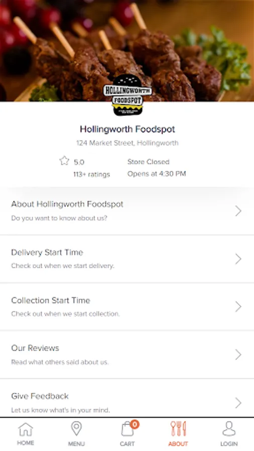 We're also available for ordering on http://kuick.com/order/hollingworth-foodspot and also on https://hollingworthfoodspot.com/storemenu