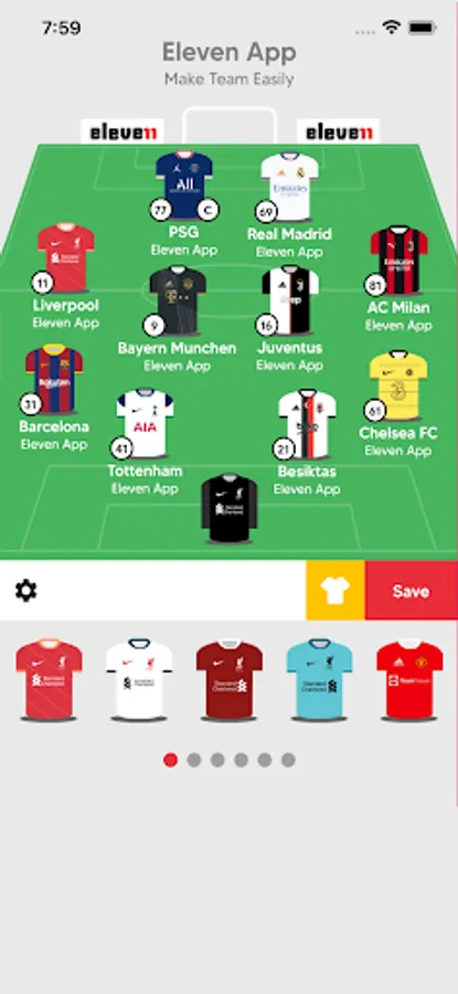 Using the Eleven application, you can create your desired team squad by using the jerseys of the teams of the most prestigious leagues we have prepared for you.