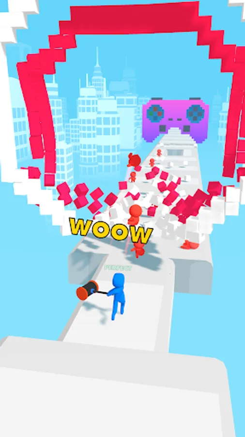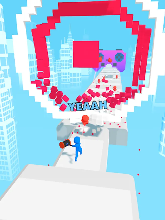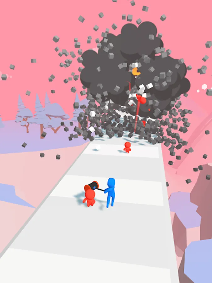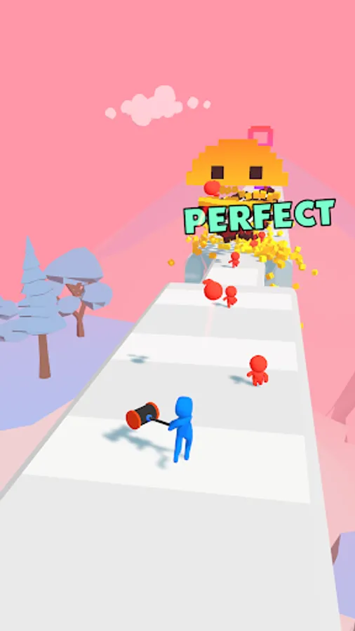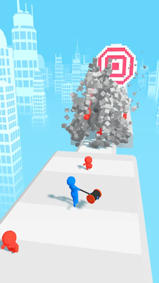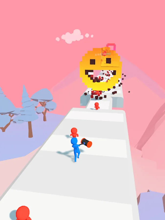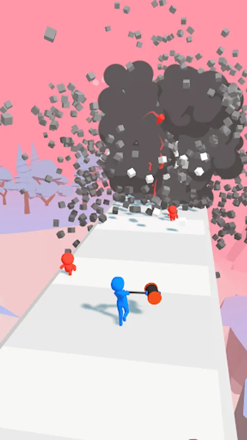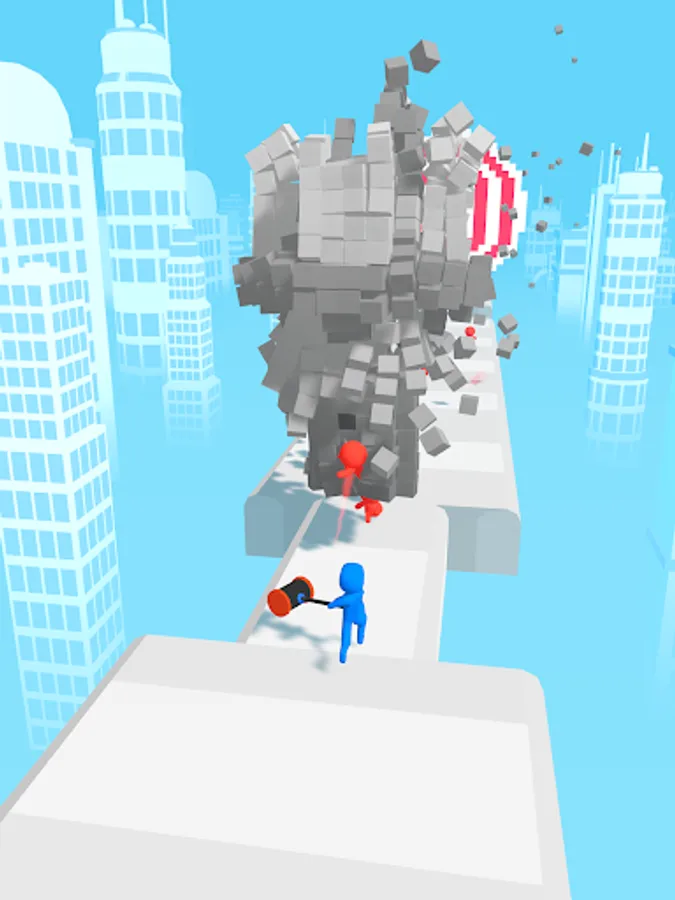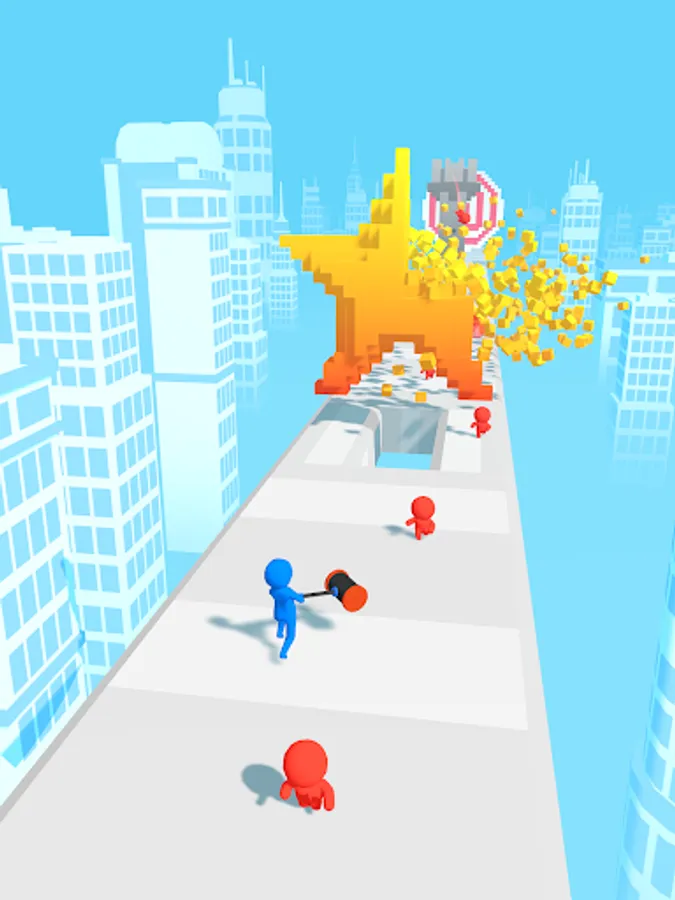 Grab your hammer and start throwing the running guys against the beautiful arts and watch them blow in a satisfying way!