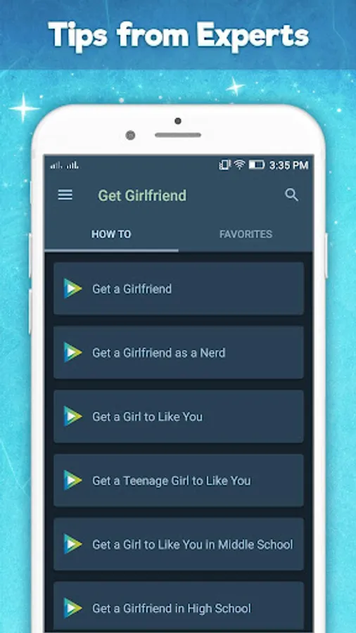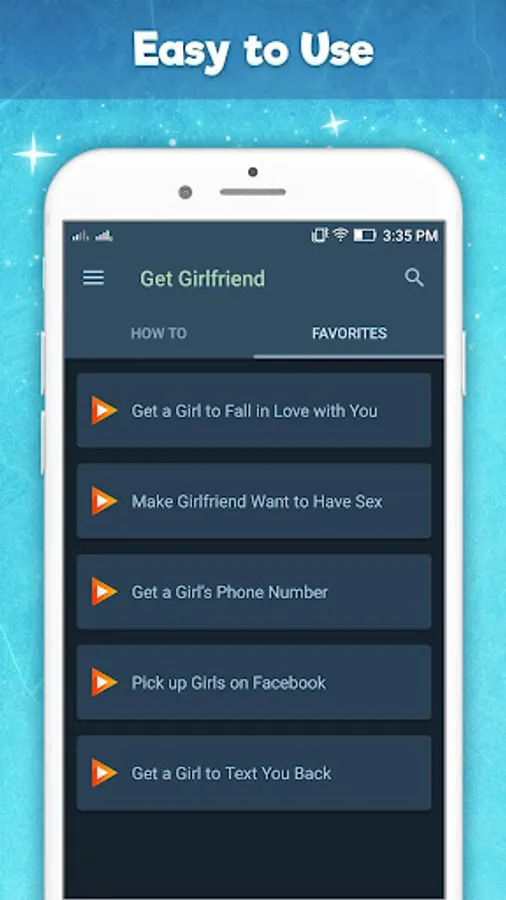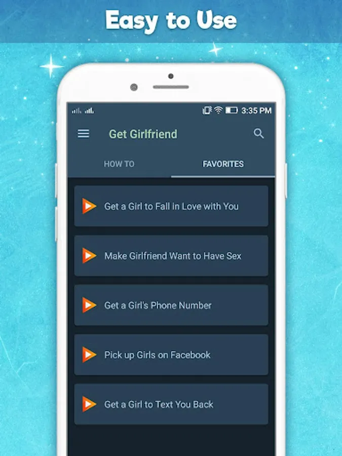 - User can mark favorite "how to get a girlfriend" tutorials.