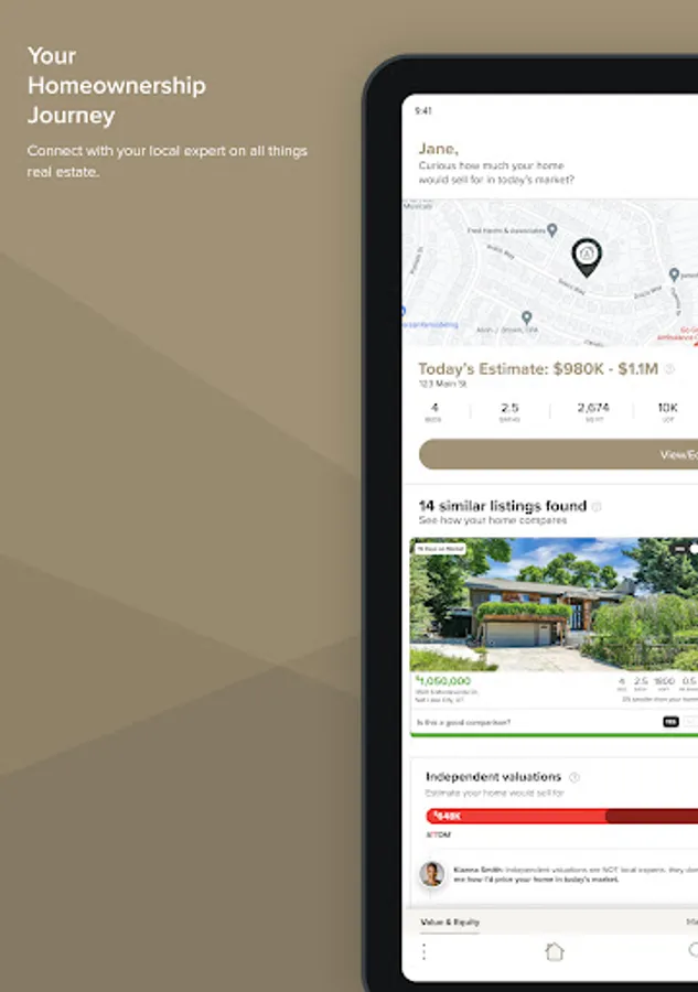 My Home: Receive real-time alerts around home value, detailed local market data, and mortgage information about your property.