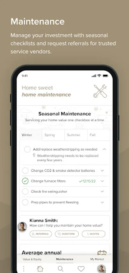 My Maintenance: Follow and complete home maintenance needs. Need a quick referral for some work for your property? Request trusted service vendors right from your agent.