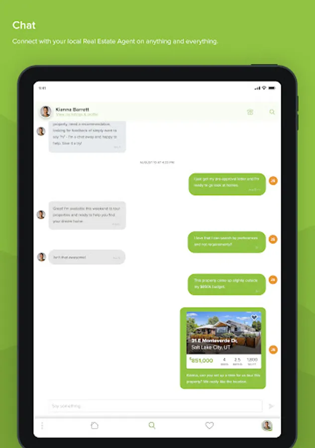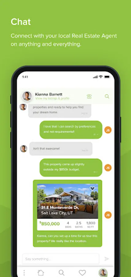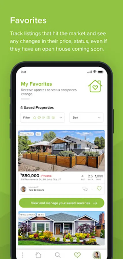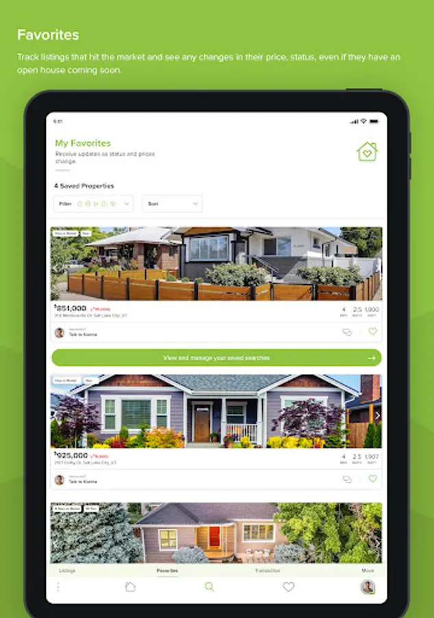 My Favorites: View saved searches and suggested homes with ease and connect with your agent for any questions.
