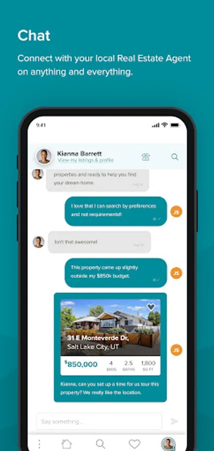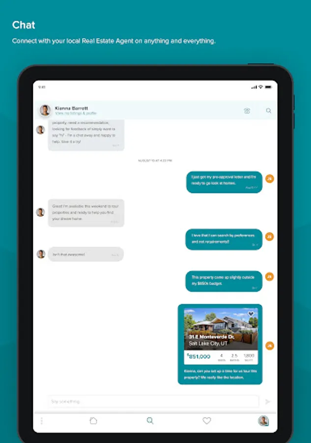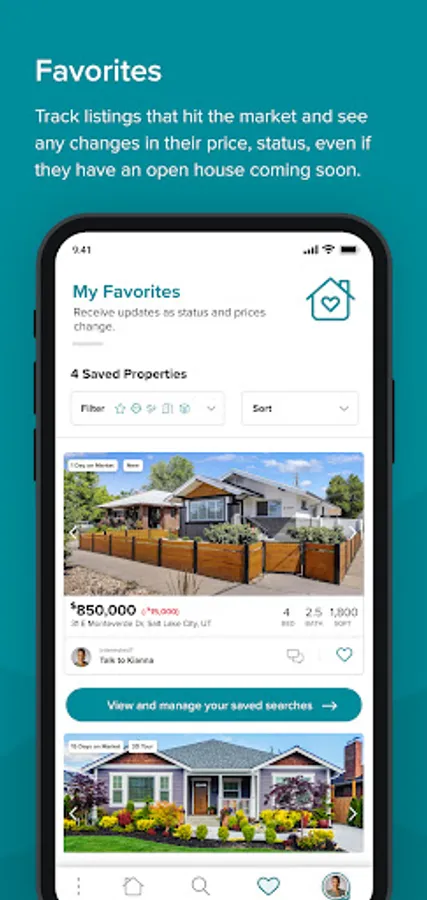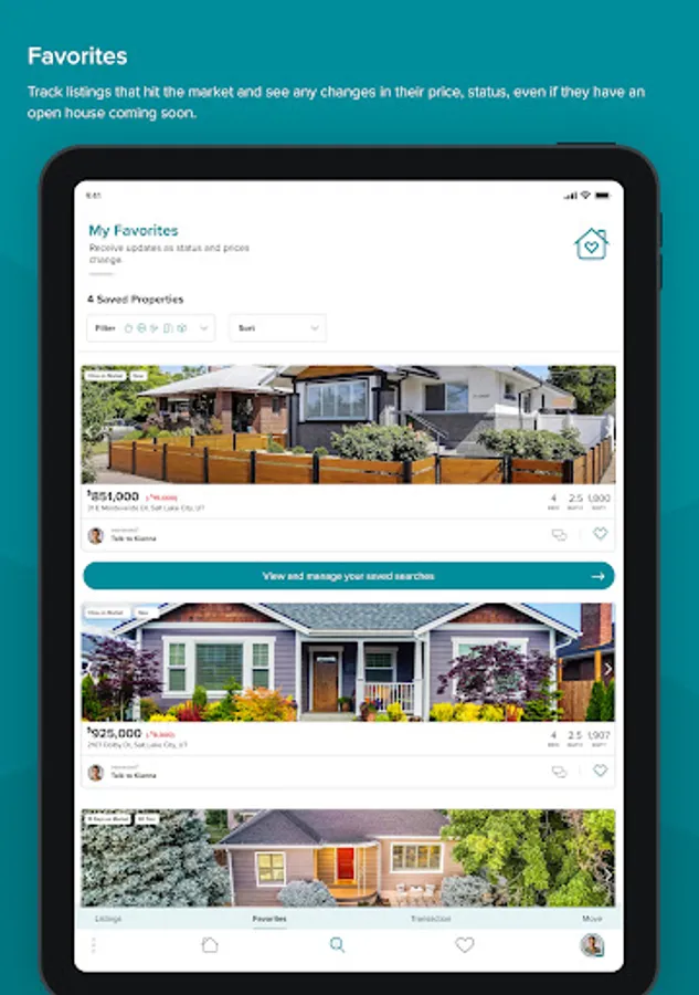 My Favorites: View saved searches and suggested homes with ease and connect with your agent for any questions.