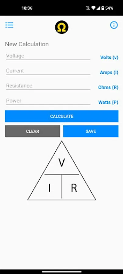 Calculate Voltage, Current, Resistance and Power by entering only 2 known values!