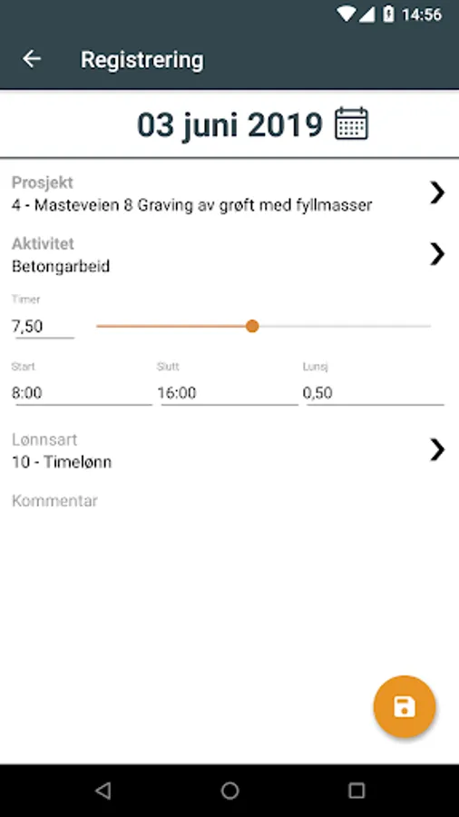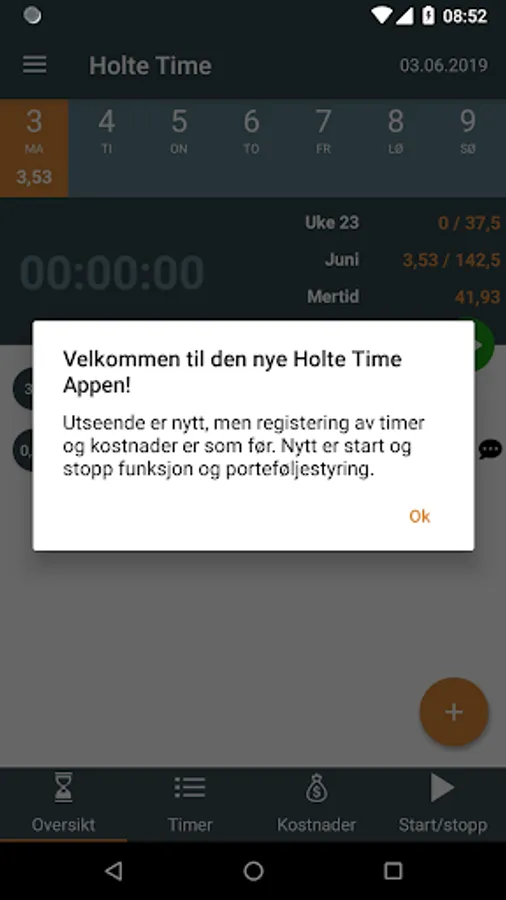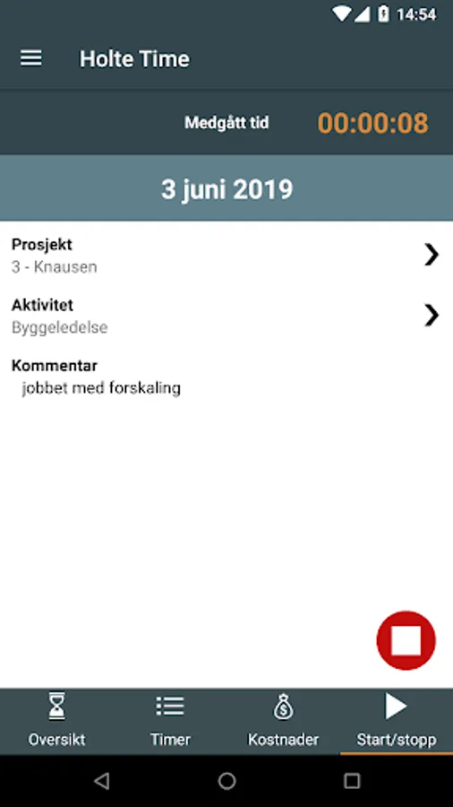 With this easy-to-use app from Holte it is easy to register the hours expended on each project. For each project, you can easily register hours on different activities and later retrieve reports on hours per project and activity. You will need an internet connection to use this application.