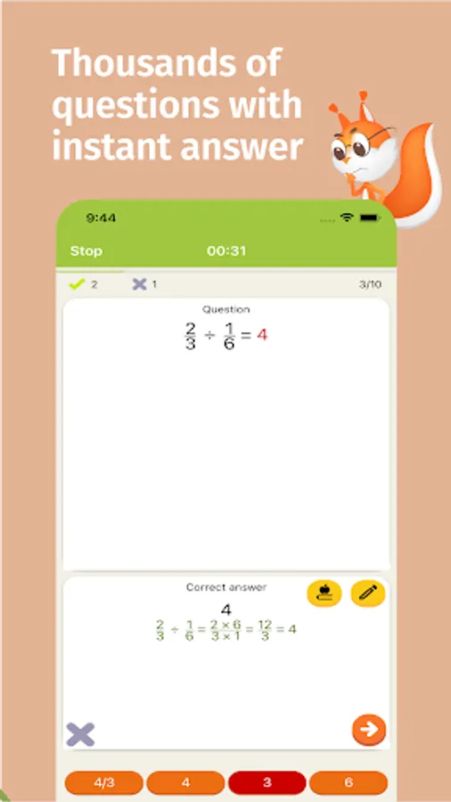 Results and test history are tracked. You can review your mistakes and progress. It is like having dozens of math worksheets and exercises directly in your device with results and solutions immediately available. Since it works offline you learn to solve math and algebra problems whenever you want! The exercises are ideal for better mathematics fluency and are suitable for kids and adults as well.
