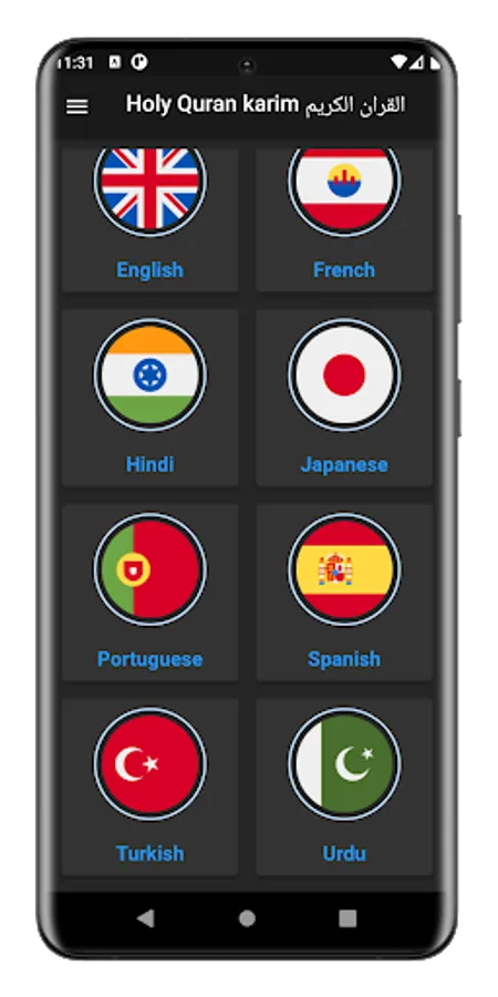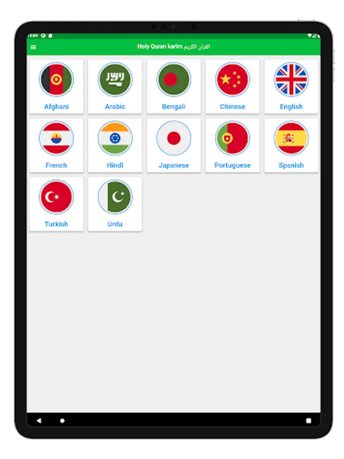 And so all Muslims is reading Holy Quran for a good day starts, atonement of sins and attainment of blessing. Holy Quran Karim القرآن الکریم Application provides Quran translations in different world top languages such as: Afghani (Pashto, Dari), Persian, Arabic, Bengali, Chinese, English, French, Hindi, Japanese, Portuguese, Spanish, Turkish, and Urdu.