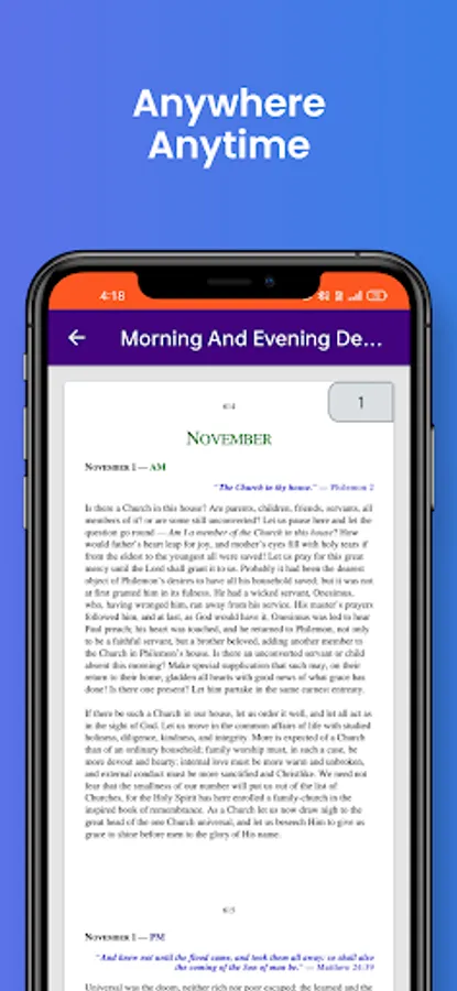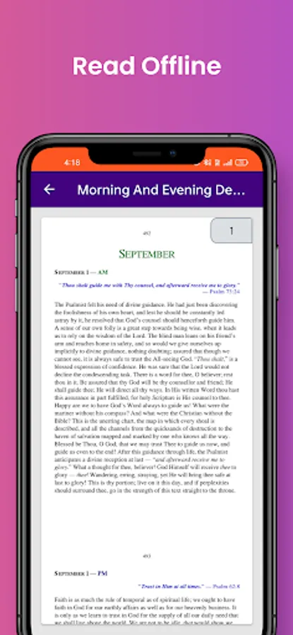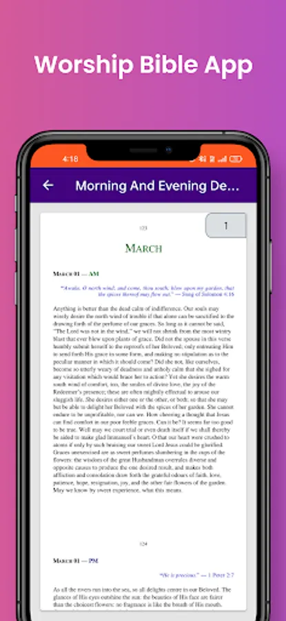 The Morning and Evening Devotional has contributed a major part in the study and understanding of the Bible scriptures. Eminent scholars and preachers have written commentary for practicing the Bible everyday. The Bible application is made out of the Hebrew Scriptures of 39 books and the New testament of 27 books. The Bible can fix the antagonism and savagery on the planet. Morning and Evening Devotional can associate individuals with the Holy Soul and keep them apart from causing harm to other people and animals on the planet.
