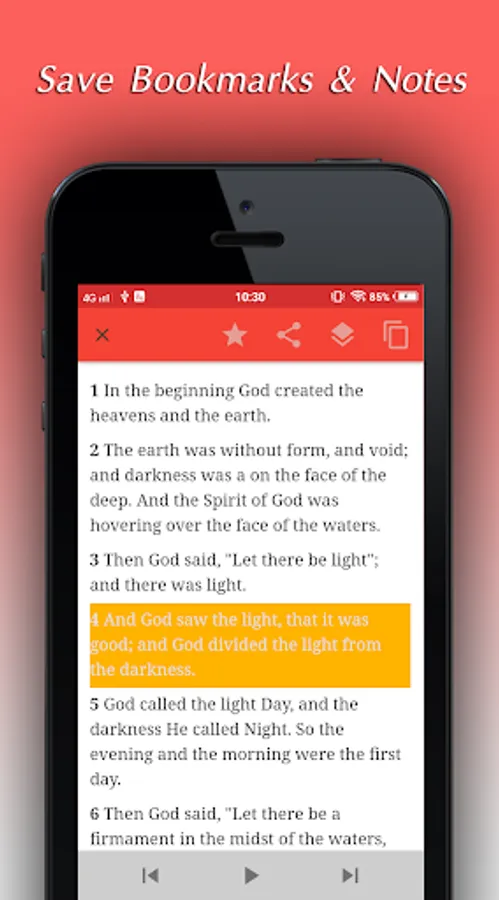 ★ Display Settings: Appearance of the Bible text can be customized to your liking. Font, text size, color, background, line spacing, and more. Night mode and full screen mode are also available. Easy bookmarks and notes