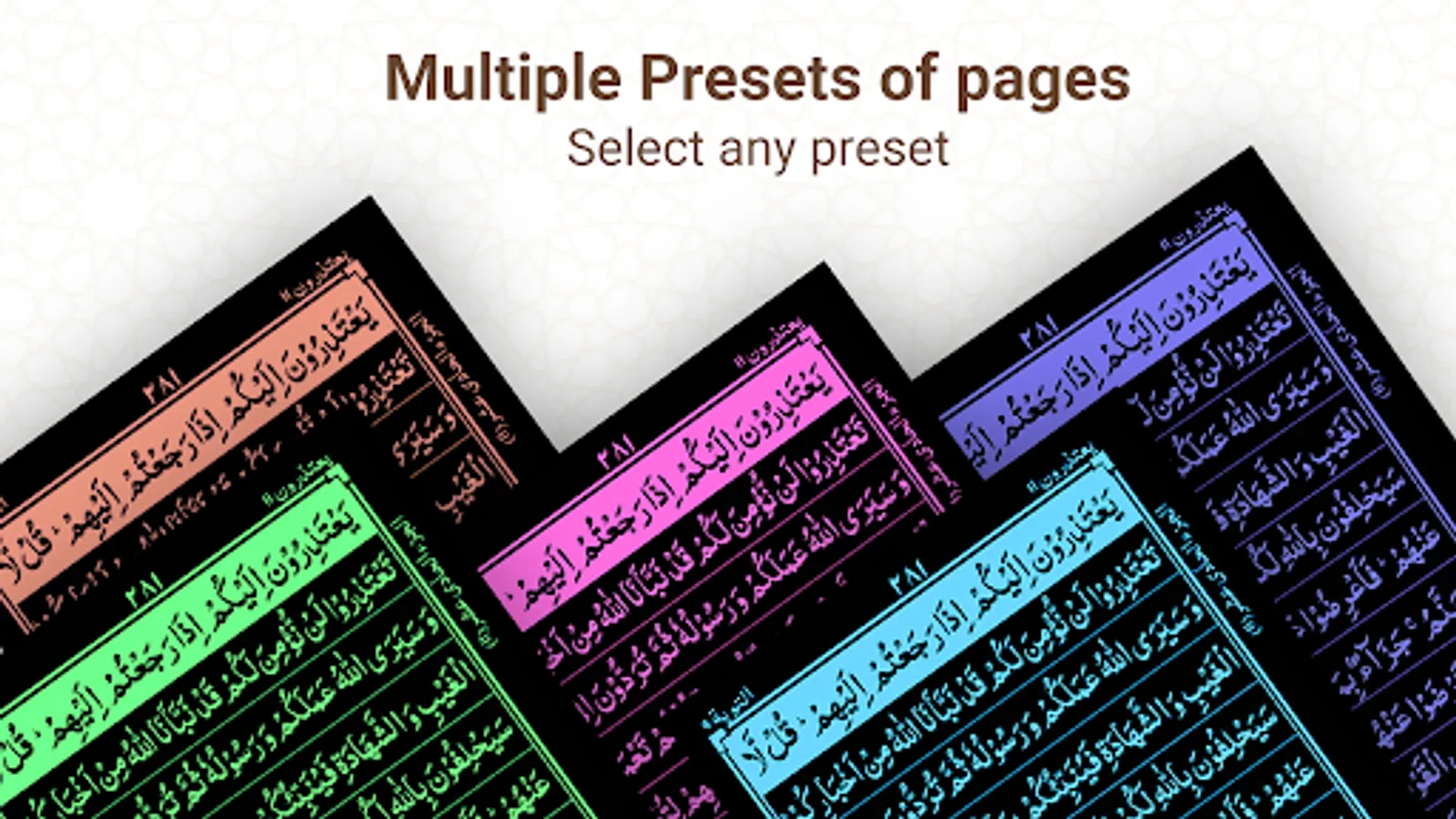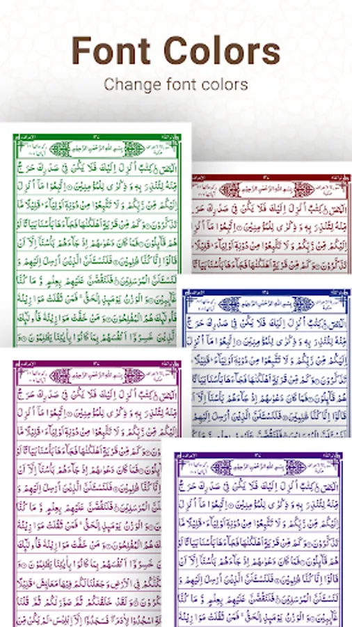 Arabic كتاب القران الكريم offline reciting compiled public holy Quran app offers personalized page cover colored layer or page screen saver to generate a lightest and dim light effect Holy Quran Pak offline app. Quran Majeed offline multiple color choice for page. القران الكريم for android is customized for reading assisting tools.