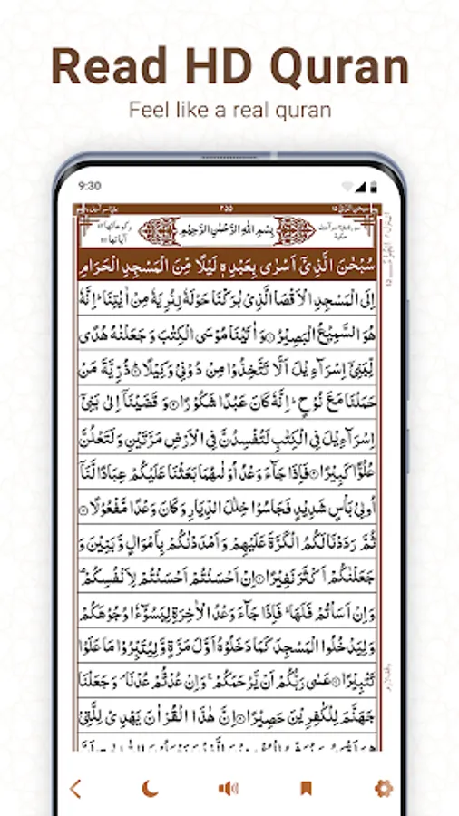 16 lines, full-fledged Real Quran page Read Quran HD Easily.