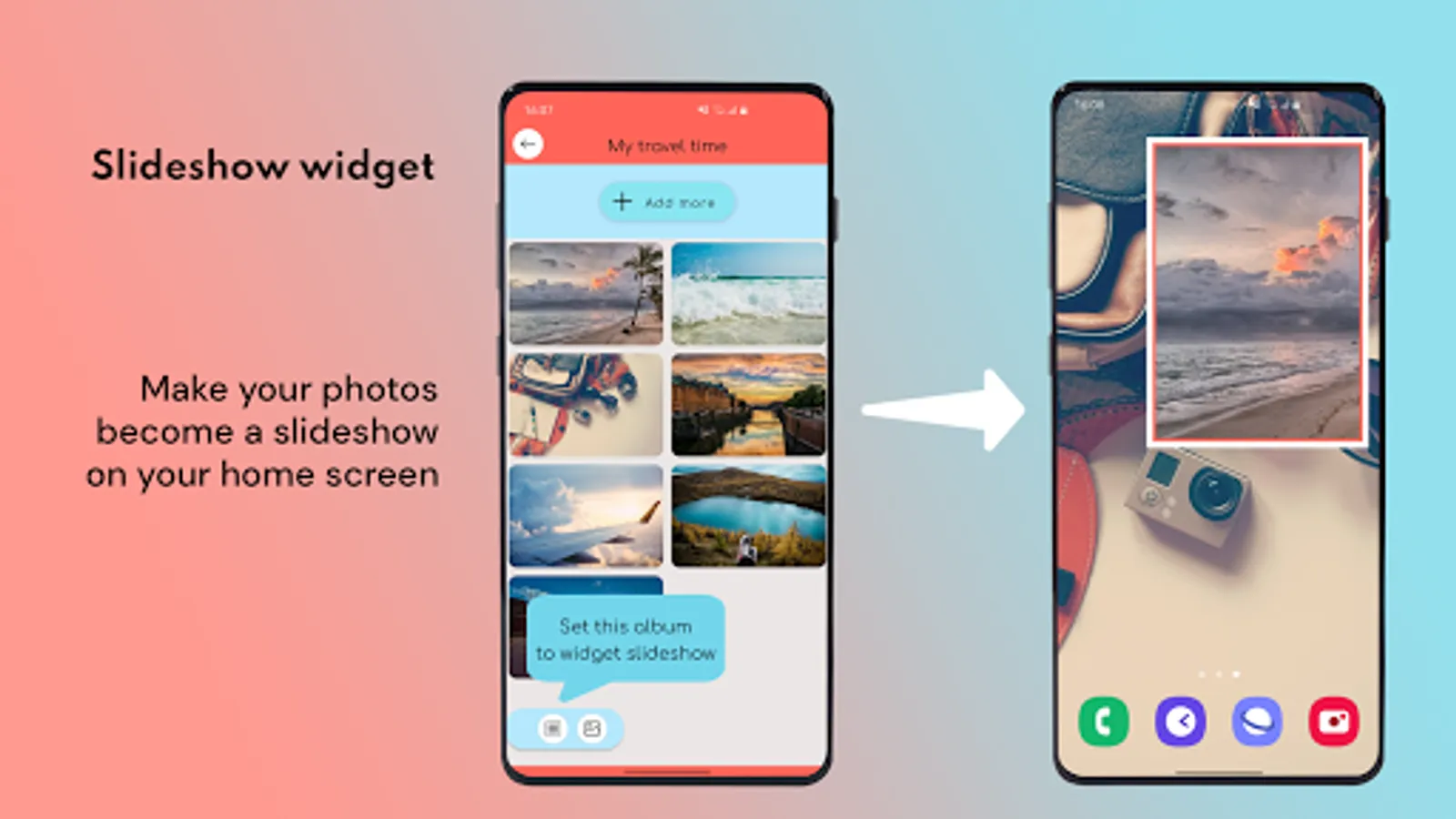 You want to show off your favorite photos even without opening any applications, why can't? This helps you to turn one of your gallery into a slideshow on your home screen, by adding a widget.