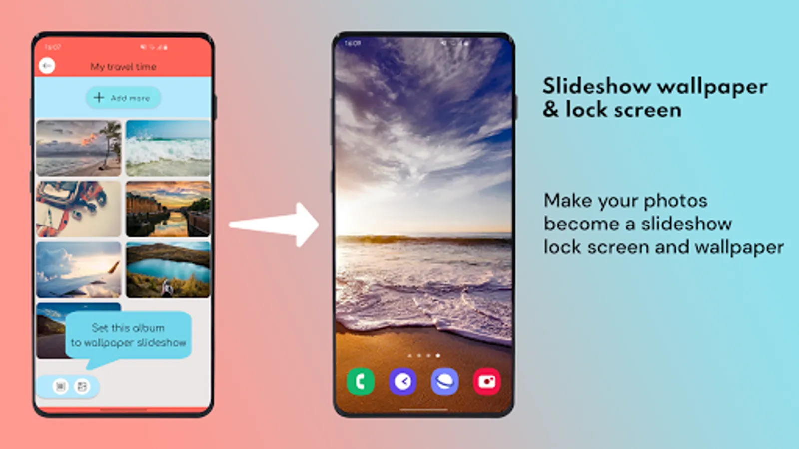 You have a lot of favorite pictures that you want to set as wallpaper, but you don't always remember having to change it. This saves you from having to think about having to open an app and change the background image, it's completely automatic like a slideshow.