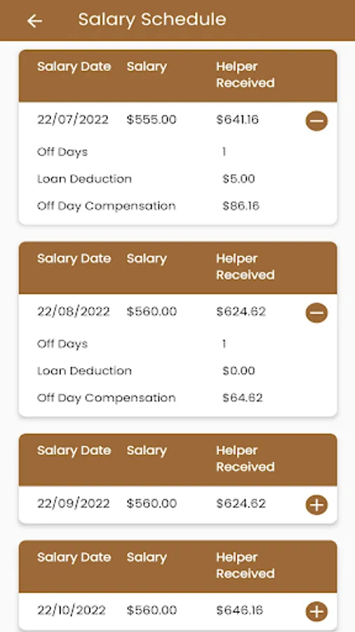 User is able to view helper profiles, booking status, other value added service related receipts from the agency and salary schedule for deployed helper.