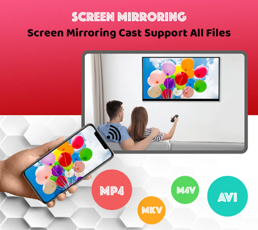 Screen Mirroring with TV App will assist you with mirroring your android phone or tablet on smart TV/Display (cast to TV) or Wireless dongles or adapters. Screen Mirroring can play videos, music, photos on any device (phone, smartTV, laptop, tablet...), screen sharing anywhere.