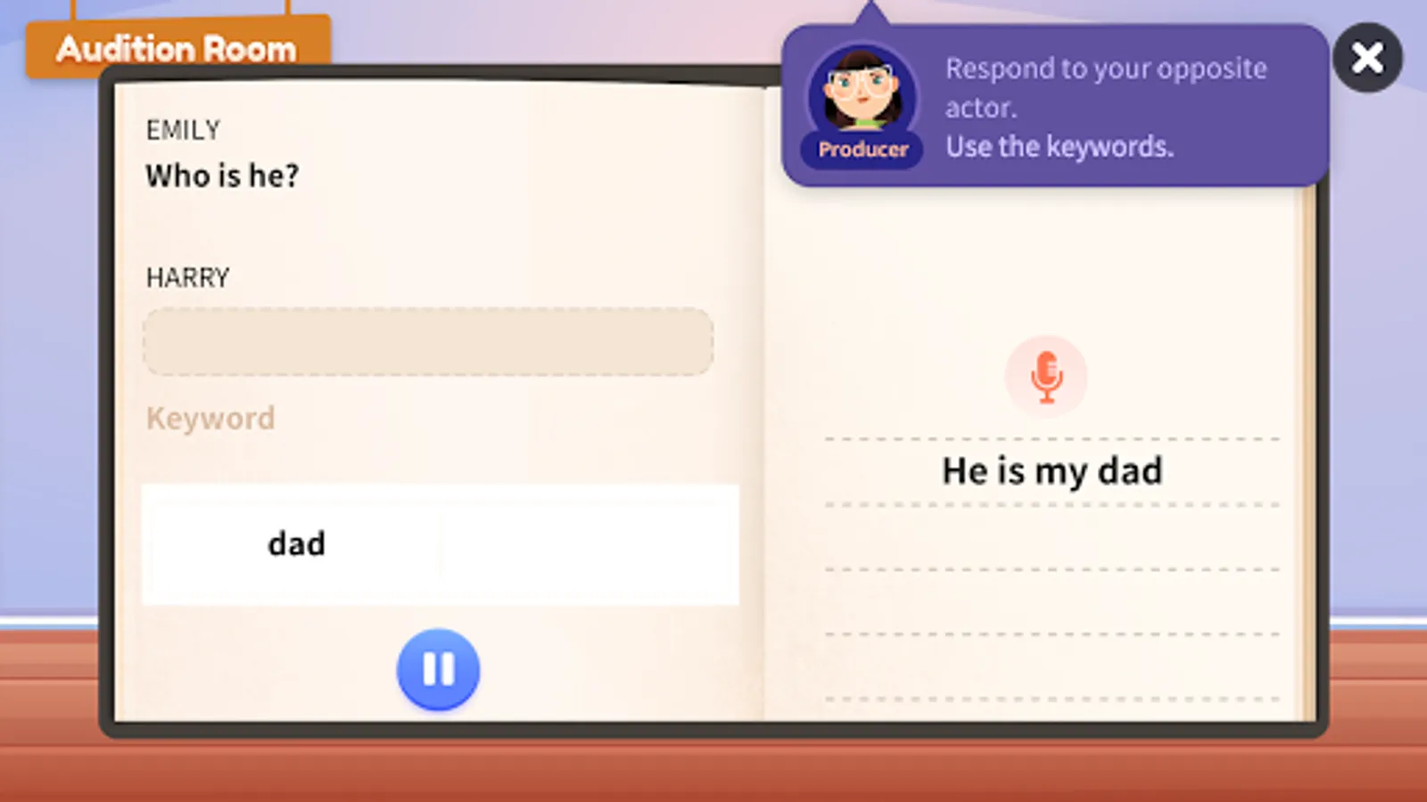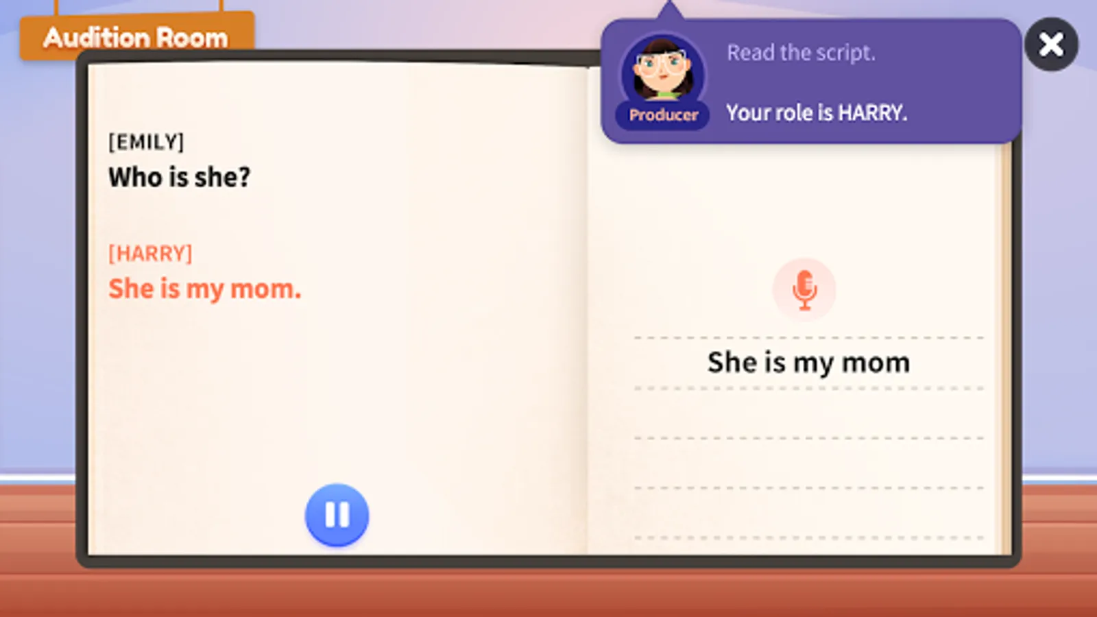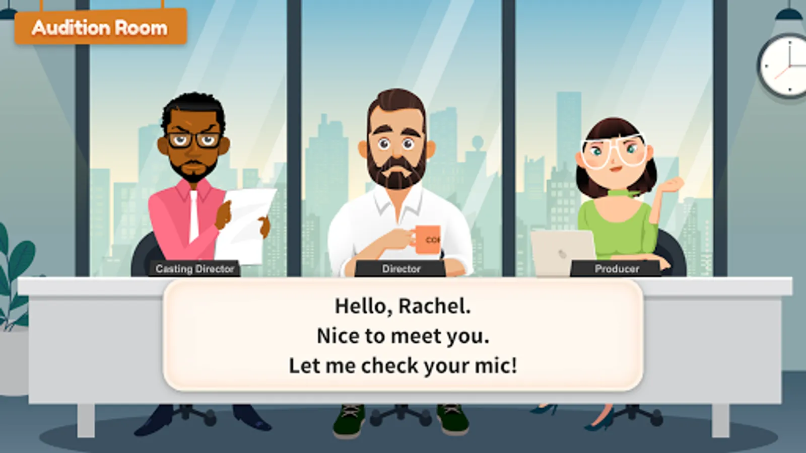 Practice custom scripts for each level in English and exchange lines with other actors.