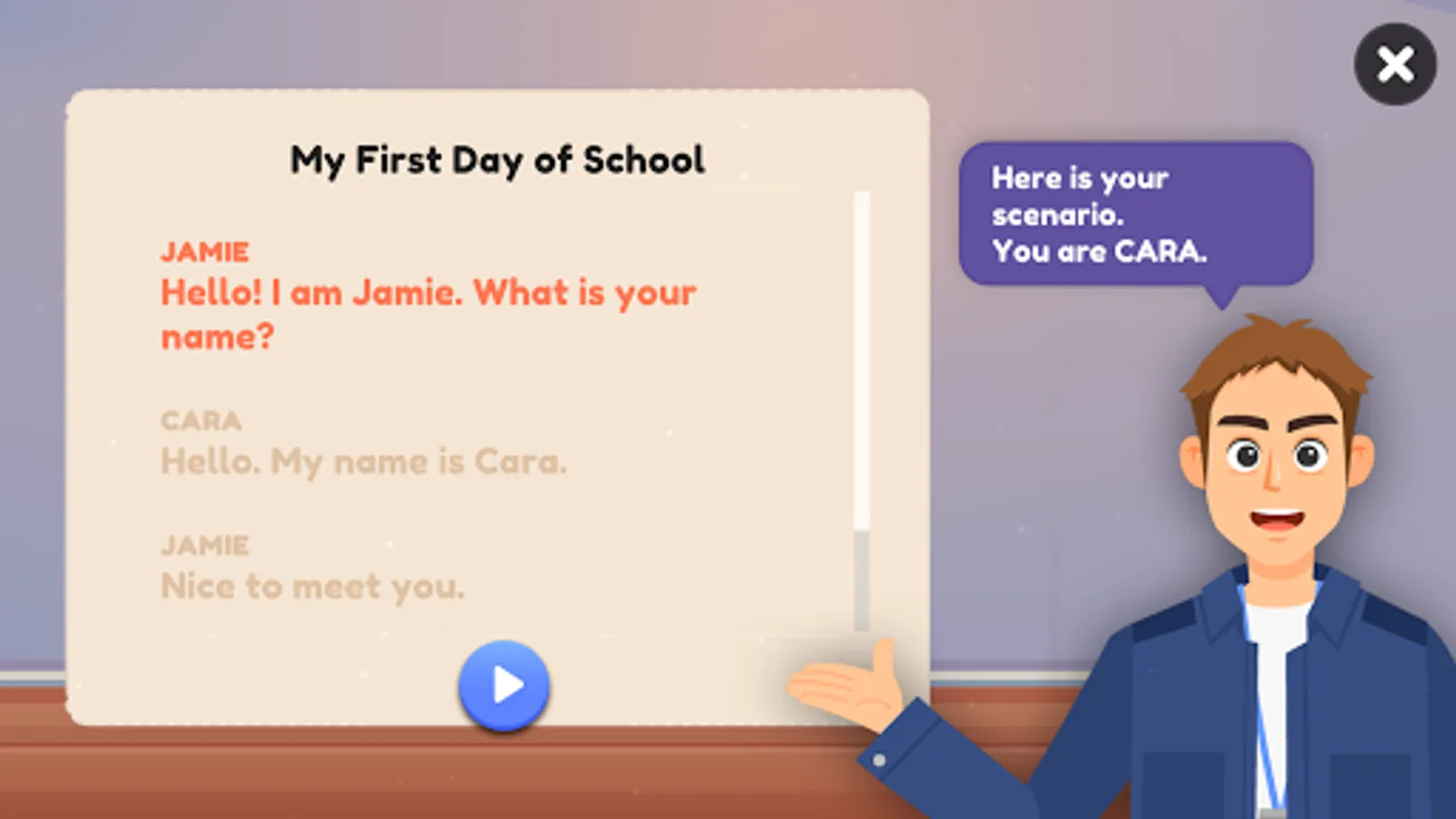 • You can learn English language skills in a step-by-step role play and game format interactively.