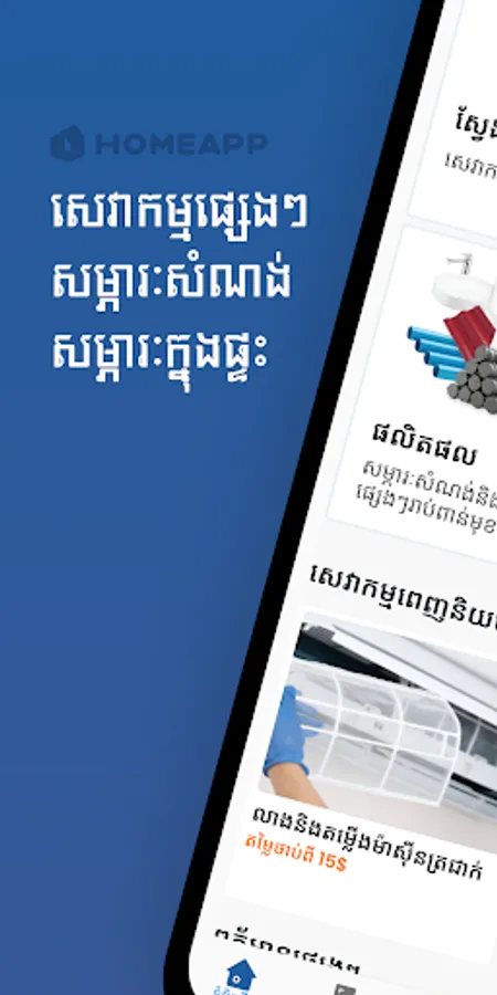 HomeApp Asia គឺជា វេទិការអនឡាញដែលប្រើប្រព័ន្ធបច្ចេកវិទ្យាទំនើបដើម្បីជួយដោះស្រាយបញ្ហាក្នុងផ្ទះរបស់លោកអ្នក ជាមួយនិង ការផ្គត់ផ្គង់សម្ភារៈសំណង់ សម្ភារៈក្នុងផ្ទះផ្សេងៗ និង ការផ្តល់សេវាកម្មផ្សេងៗ ដោយអ្នកជំនាញដែលមានការធានាត្រឹមត្រូវ។