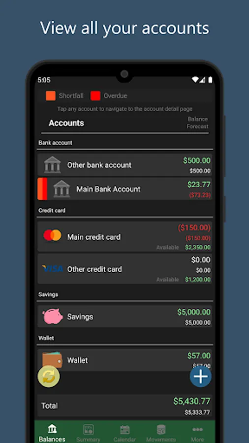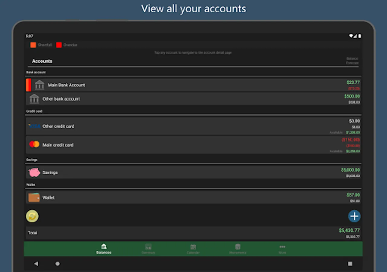 ◾ Create bank accounts, credit cards, cash, savings ...