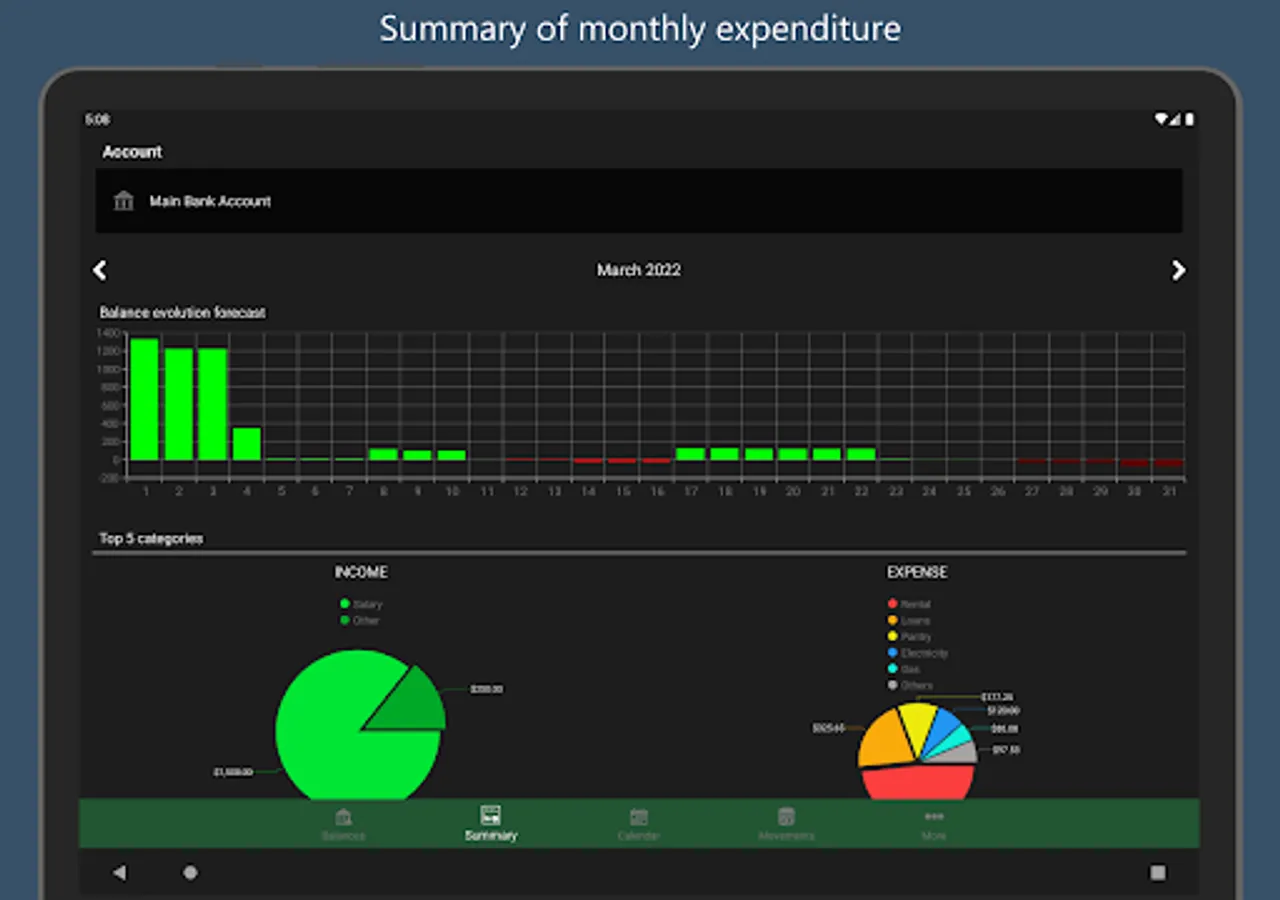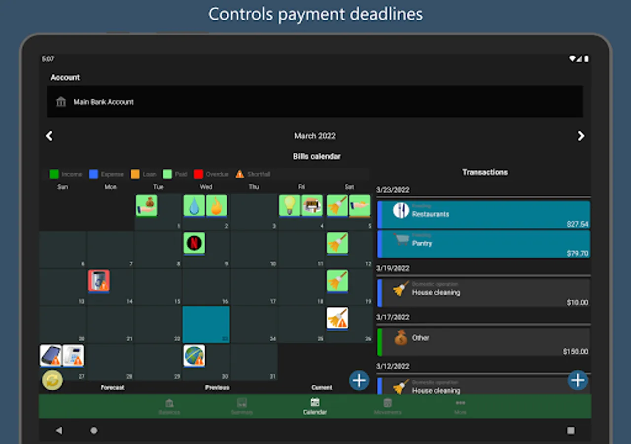 📅 Keep your accounts up to date and plan your payments thanks to the bills calendar with category images that allows you to quickly identify the payments of the month