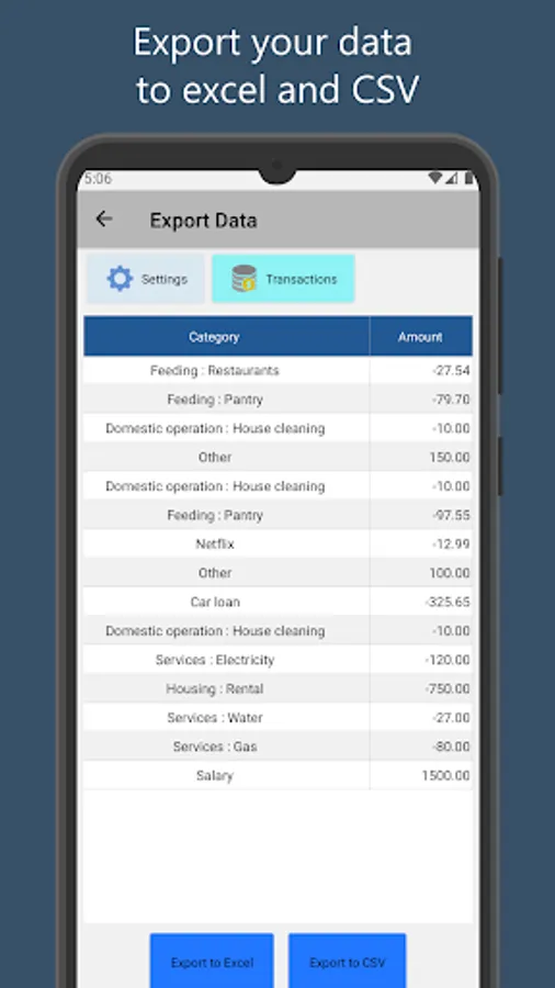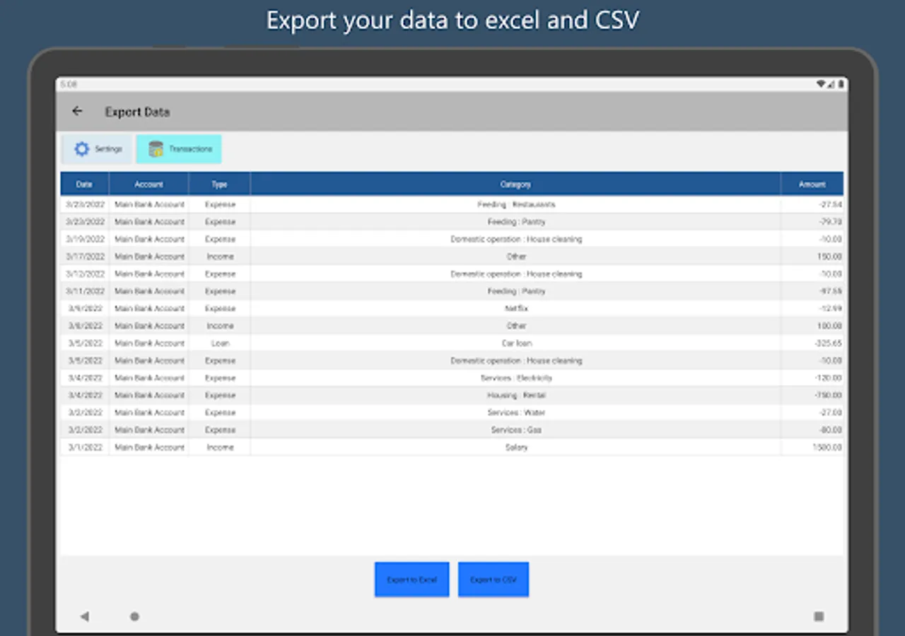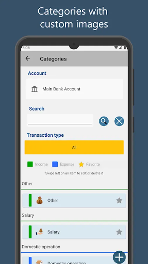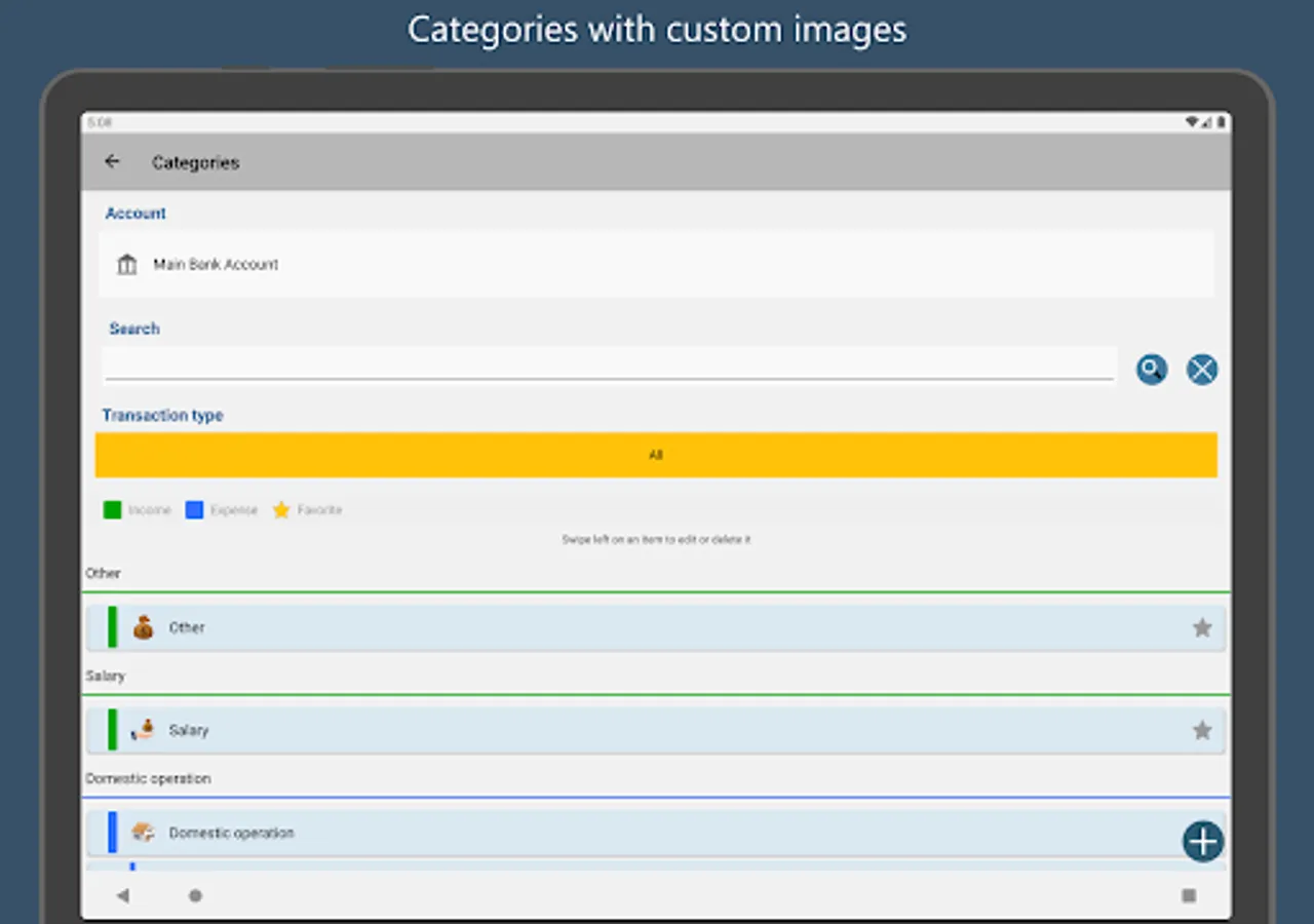 ◾ Filter by transaction type, category and subcategory.
