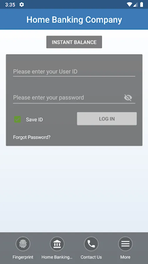 To get started, download and launch the app. Then sign on with your Home Banking Company Internet Banking User ID and Password. If you do not already have an Internet Banking User ID and Password please visit one of our five conveniently located branches to sign up.