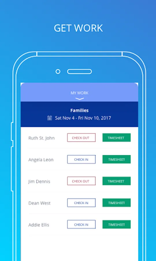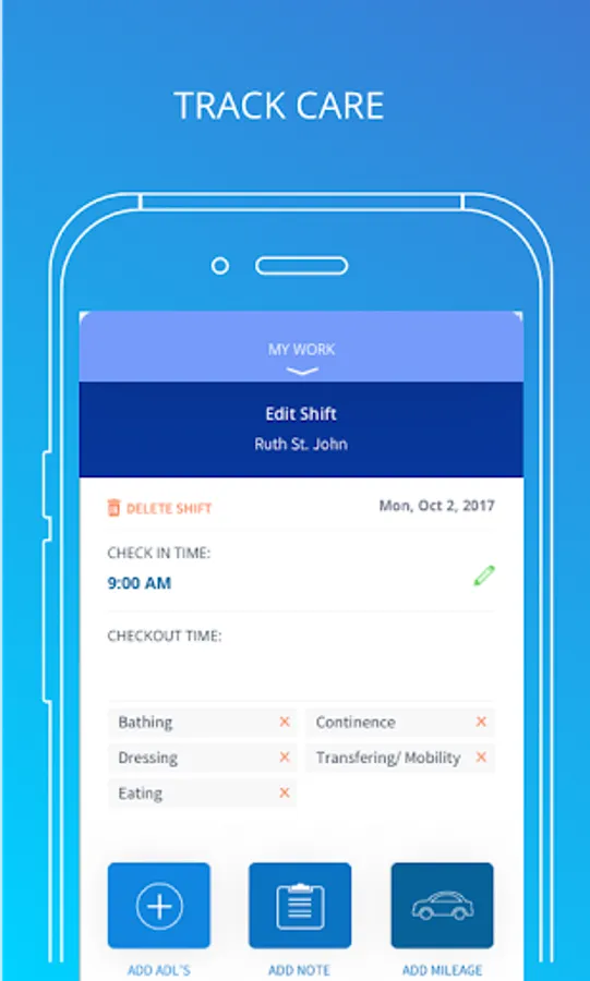Simply check in and out with our app, and enjoy the ease of tracking of your hours and job functions all in one place. Track activities of daily livings (ADLs) and review your timesheet for the week.