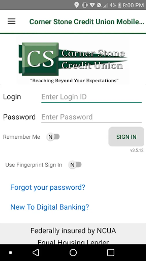 Available to all Corner Stone Credit Union Internet Banking users, the CSCU App uses the same industry standard security technologies as our online banking. Simply use your Corner Stone Credit Union Online Banking Login and Password. If you don't yet have a Login or Password just visit us at http://www.cornerstonecreditunion.net to enroll.