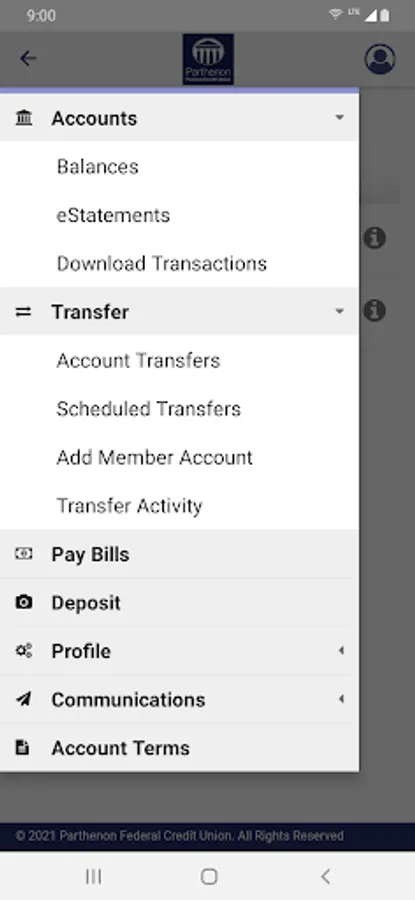 Access your Parthenon Federal Credit Union accounts 24/7 from anywhere with Mobile Parthenon. It's Fast, Secure, and Free for all PFCU members who are enrolled in our Internet banking service! With Mobile Parthenon you can: