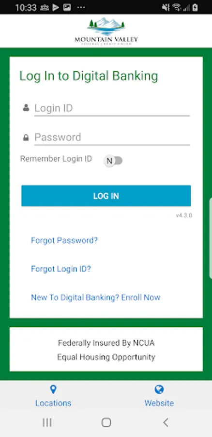 Available to all MVFCU Internet Banking users, Mountain Valley Federal CU uses the same industry standard security technologies as our online banking. Simply use your MVFCU Internet Banking LoginID and Password. If you don't yet have a LoginID or Password just visit us at https://mountainvalleyfcu.com to enroll.