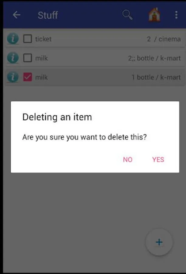 The application is multi user, your partner can write the list, and you buy items and check them out and vice versa.