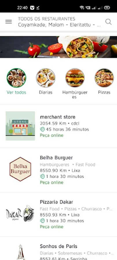Para se inspirar, veja os restaurantes na sua zona e as suas opções favoritas de fast food. Também pode encontrar o que pretende procurando por um restaurante, prato ou tipo de cozinha específicos. Pizza, Hambúrgueres, e comida tipica portuguesa, etc etc.