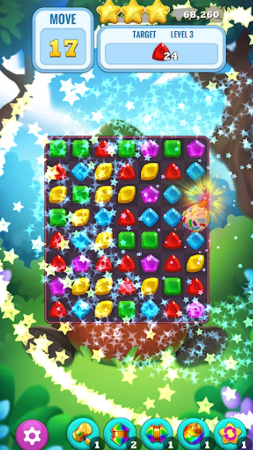 💪 Jewel Hunter is simple and fun, but full of challenges. After completing the level challenge, you will get stars. These stars can be used to collect treasures prepared for you.