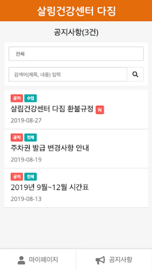 어플을 다운받으면 쿠폰의 유효기간, 잔여쿠폰, 내가들은 운동수업현황, 공지사항 등을