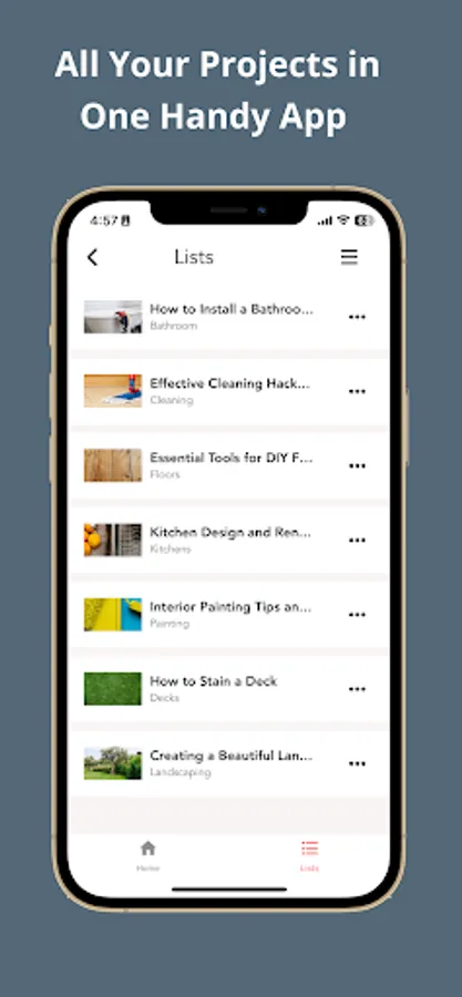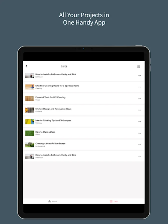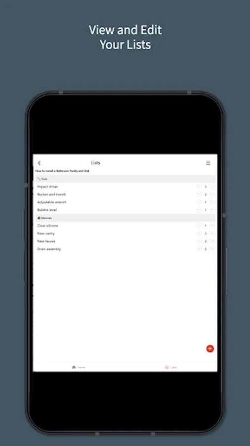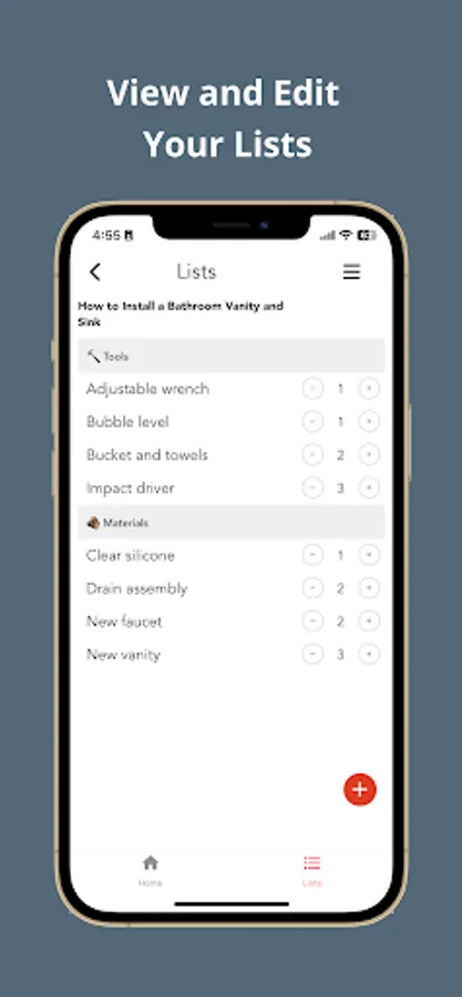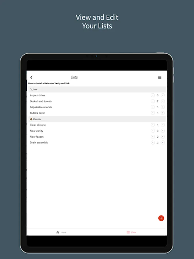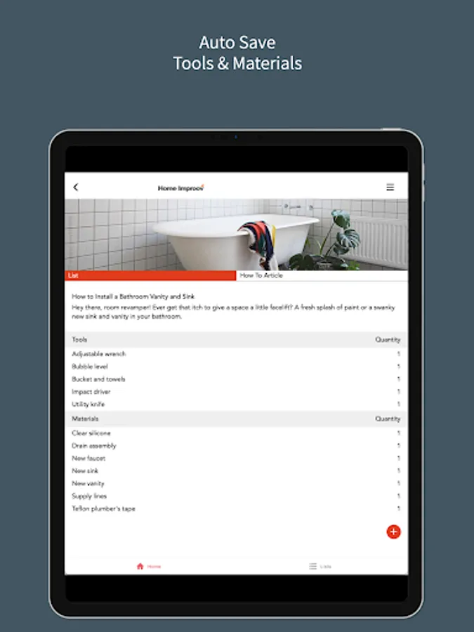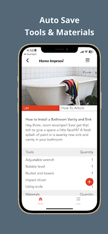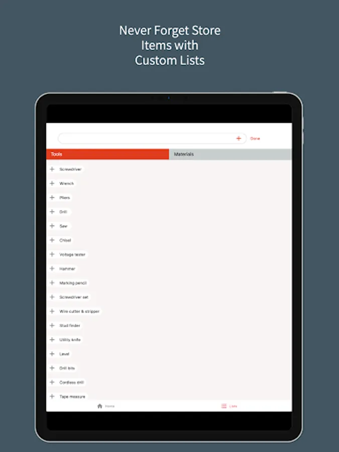 Home Improov offers a handy way to view how-to guides and automatically adds the necessary tools and materials to your shopping list. You can easily edit, add to, and save your saved lists for repeated use.