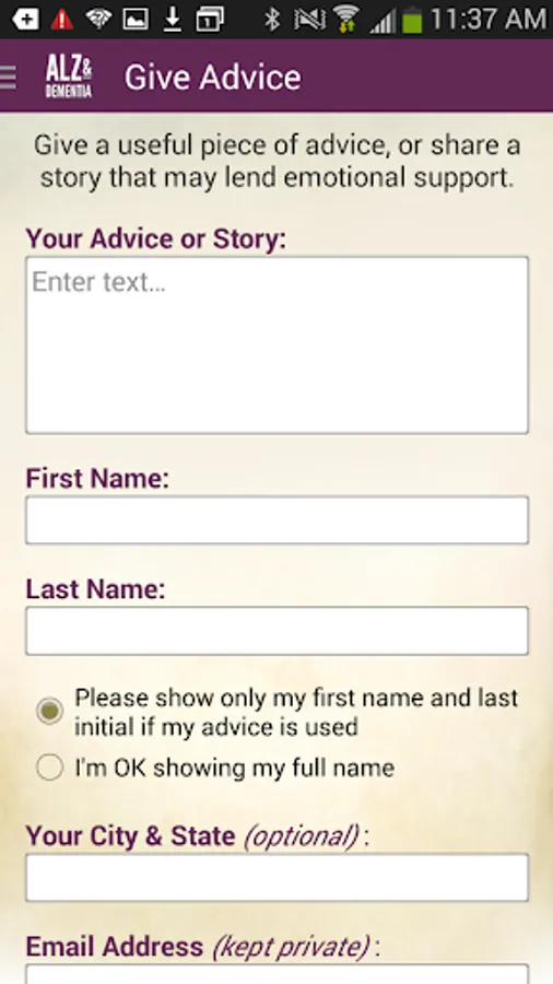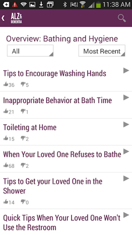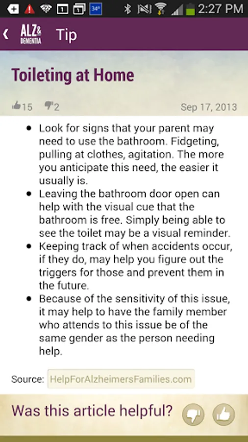 • Built-in rating system for caregivers to rate each tip so other caregivers benefit from their insight and evaluation of the advice.