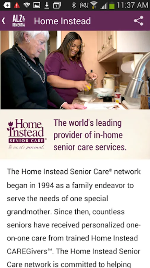 Alzheimer’s and other dementias family caregivers now have help at their fingertips. This app, a resource brought to you by Home Instead Senior Care®, helps build caregivers confidence to provide care by arming them with immediate tips and practical advice for all of the behaviors and situations they face on a daily basis. Caregivers can search on situations they are struggling with, and the app will return immediate and relevant answers. These tips are compiled by experts as well as family caregivers dealing with Alzheimer’s or other dementia illnesses.