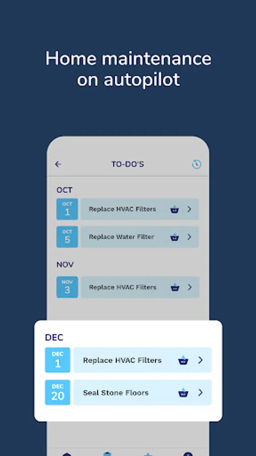 - Maintenance to-do's specifically for your home - based on what's installed and region