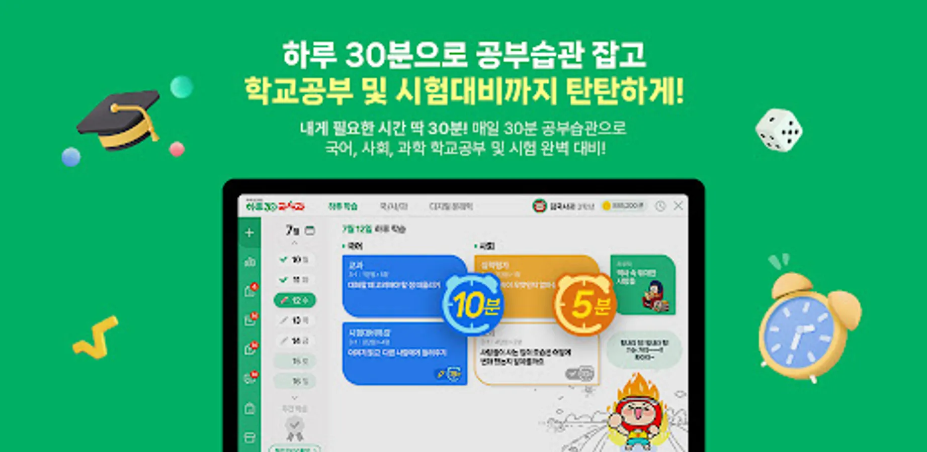 Prepare thoroughly for 30 minutes a day of Korean, private, and school classes and exams!